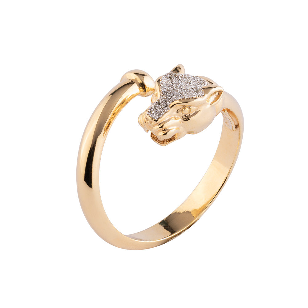 Anello testa di pantera con polvere di diamanti