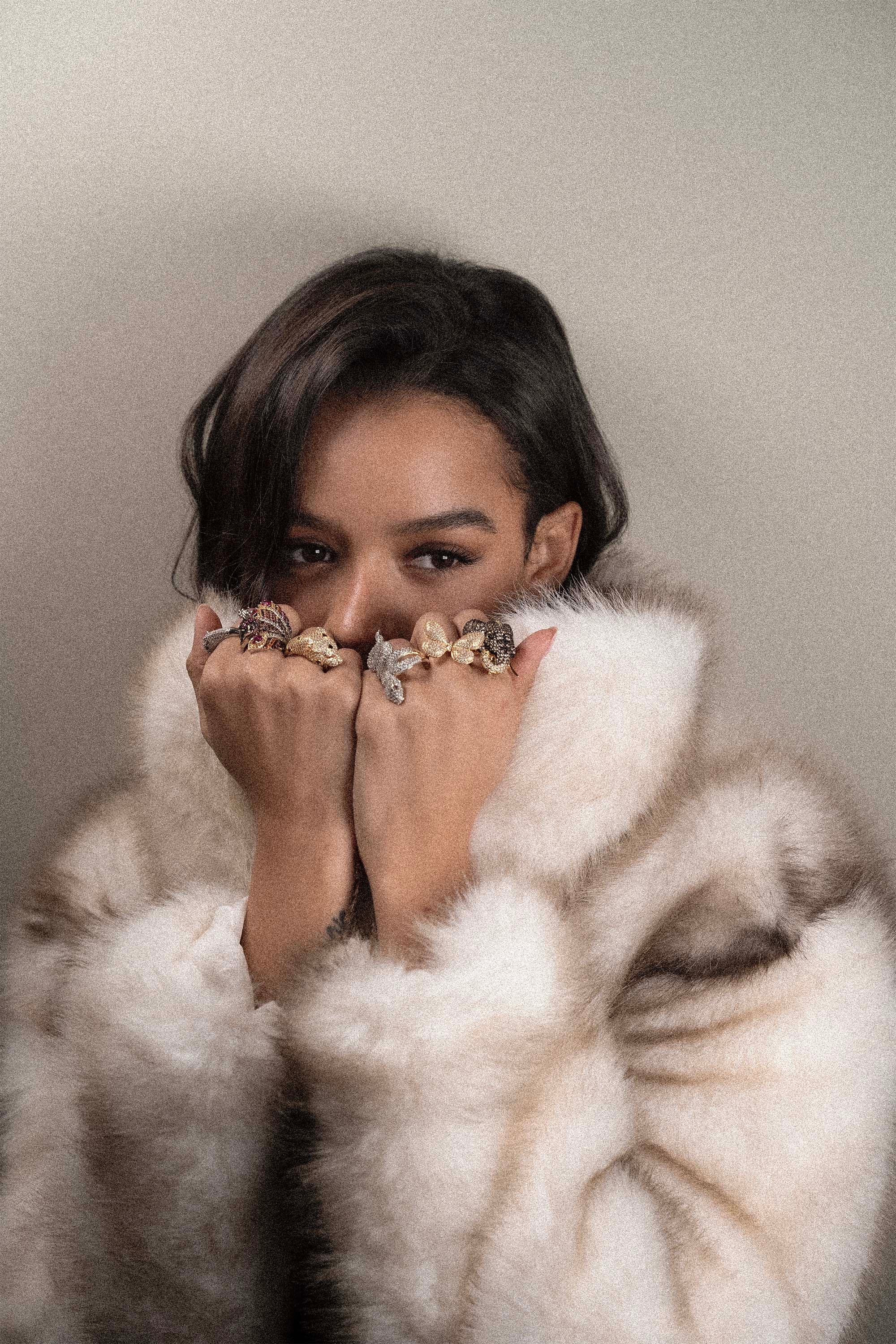 Anello Urban Jungle scultura Pavone in zirconi multicolor, bronzo placcato oro 24kt. Misura regolabile.