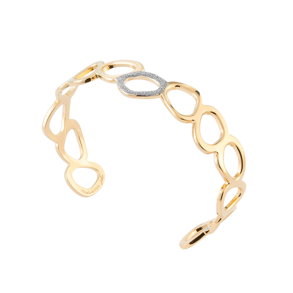 Bracciale rigido in argento 925 con elemento ovale centrale in polvere di diamanti.