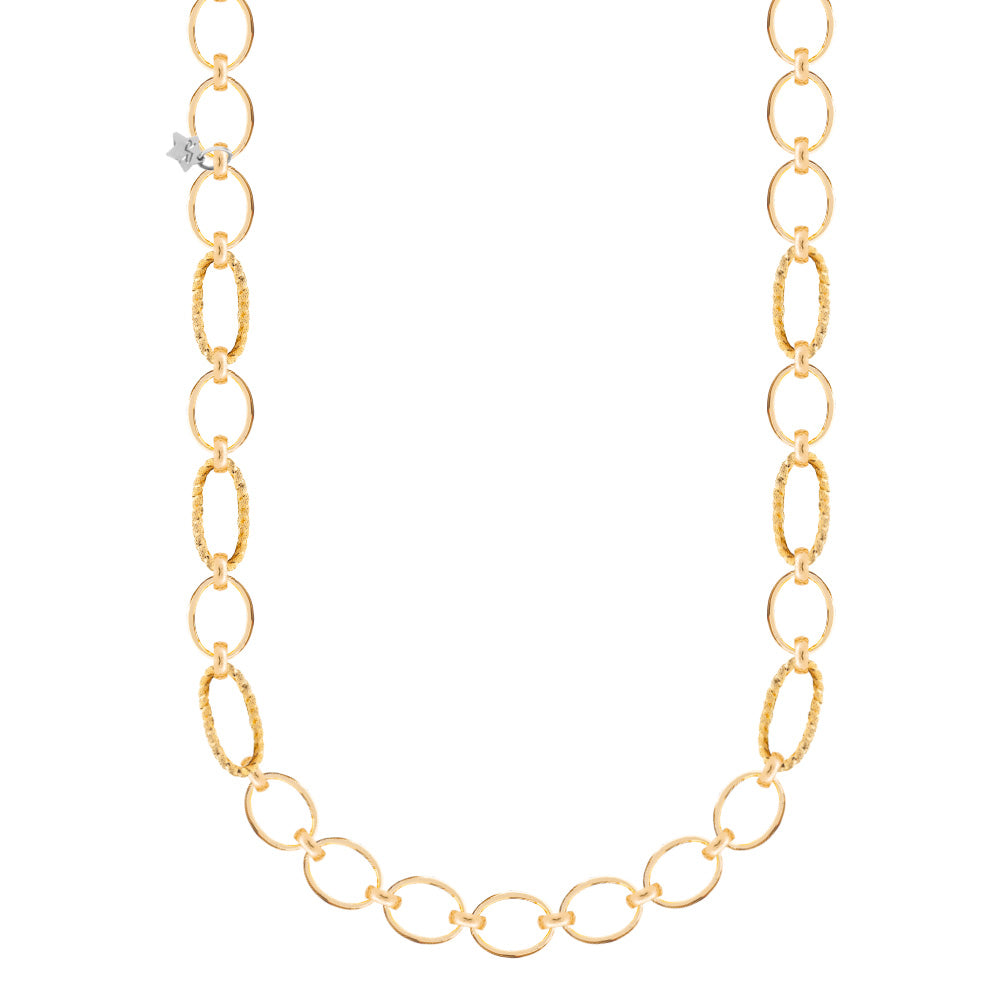 Collana Diva lunga modello Chanel in lega leggera placcata oro 24 kt maglia mix diamantata e liscia.