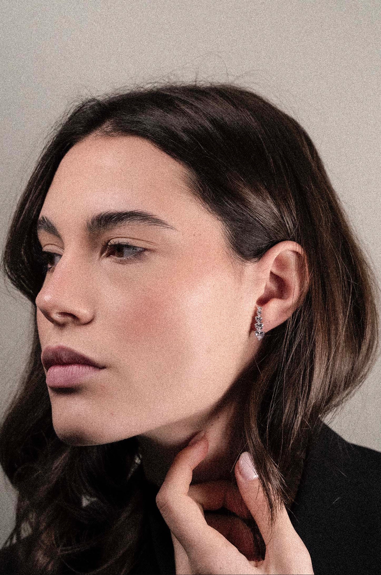 Orecchini in argento 925 con pietre glass gemstone cuori a cascata. Chiusura a scatto.