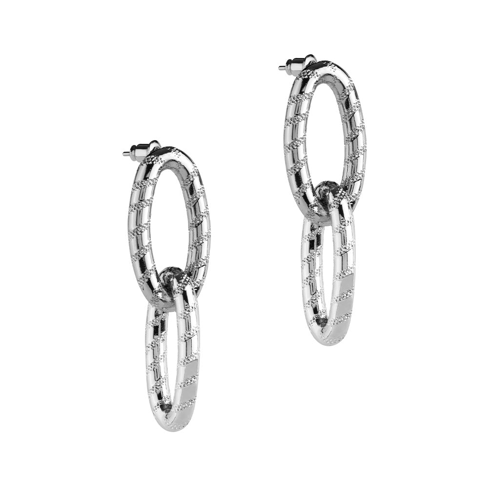 Orecchini pendenti Diva con maglie a riga diamantata bicolor