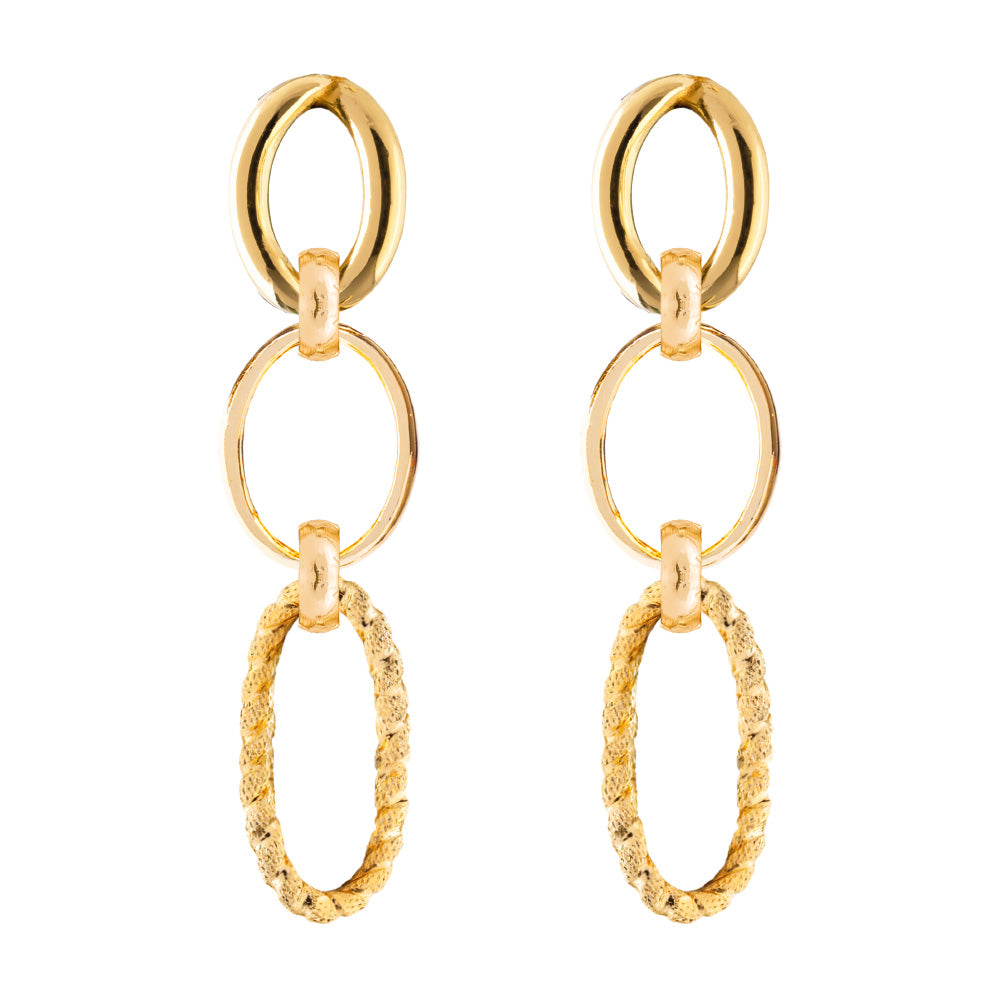 Orecchini lega leggera placcati oro 24 kt con pendenti maglia diamantata e mix.