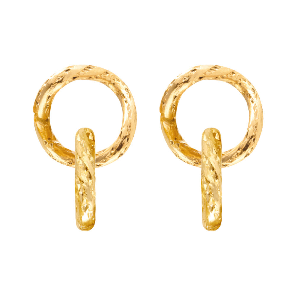 Orecchini in lega leggera placcato oro 24 kt pendenti cerchi a maglia diamantata.